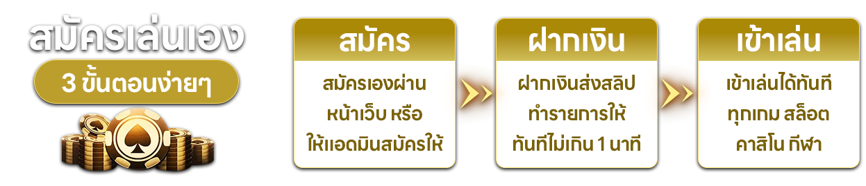 ตอบ : - กรอกข้อมูลส่วนตัว เบอร์โทรศัพท์ และบัญชีธนาคารที่หน้าเว็บไซต์ ยืนยันตัวตนผ่าน OTP รอรับ username/password ใช้เวลาไม่เกิน 3 นาที